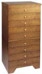 Shown in Walnut finish. Constructed with solid hard maple drawer fronts. Top and sides are maple veneer. Dimensions are 32 in. high, 16 in. wide, and 14 in. deep. Brass drawer pulls. Can be shipped UPS.